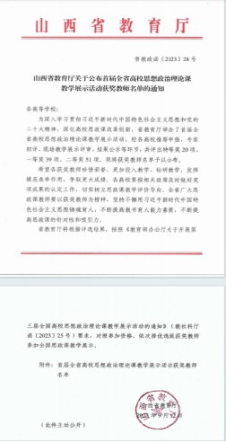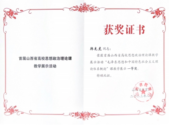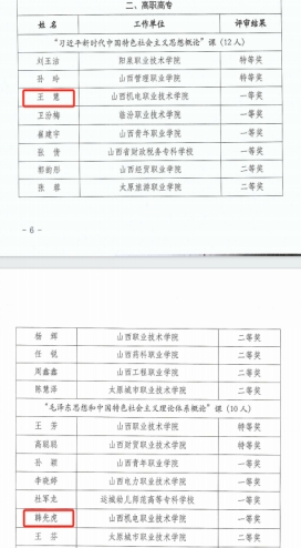 我院思政部教师韩先虎获高职组“毛泽东思想和中国特色社会主义理论体系概论”课一等奖,王慧获“习近平新时代中国特色社会主义思想概论”课一等奖。